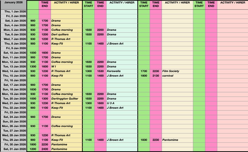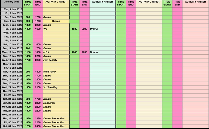 Please remember this is a fluid situation and potential hirers should check availability with the bookings officer before submitting a bookings application form.